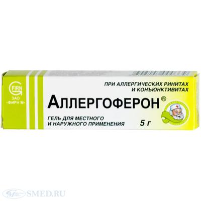 Артикул: 160398Полное название:Аллергоферон гель д/местн. прим. 5 г №1, Фирн М ЗАОУсловия хранения: 2-8 С
