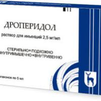 Артикул: 2890Полное название:Дроперидол р-р для в/в и в/м введ. 2.5 мг/мл 5 мл №5 флаконы, Московский эндокринный завод ФГУП